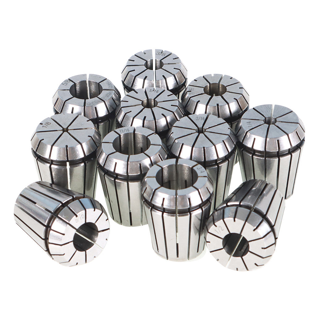- 11Pcs ER32 Collet Set :Inner diameter: 3mm(1/8 )/5mm(3/16)/6mm(1/4)/8mm(5/16)/10mm(3/8)/11mm(7/16) 13mm(1/2)/14mm(9/14)/16mm(5/8)18mm(11/14)/19mm(3/4)