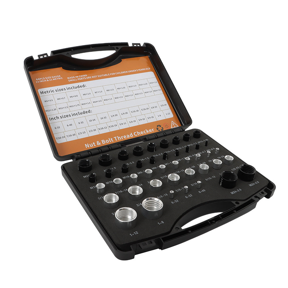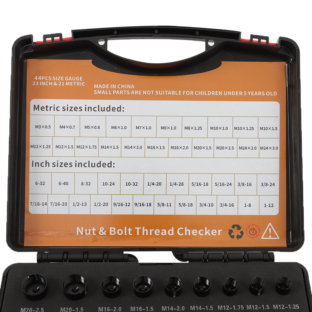 21 Metric & 23 Inch Sizes Identifier Gauge Box Nut and Bolt Thread Checker