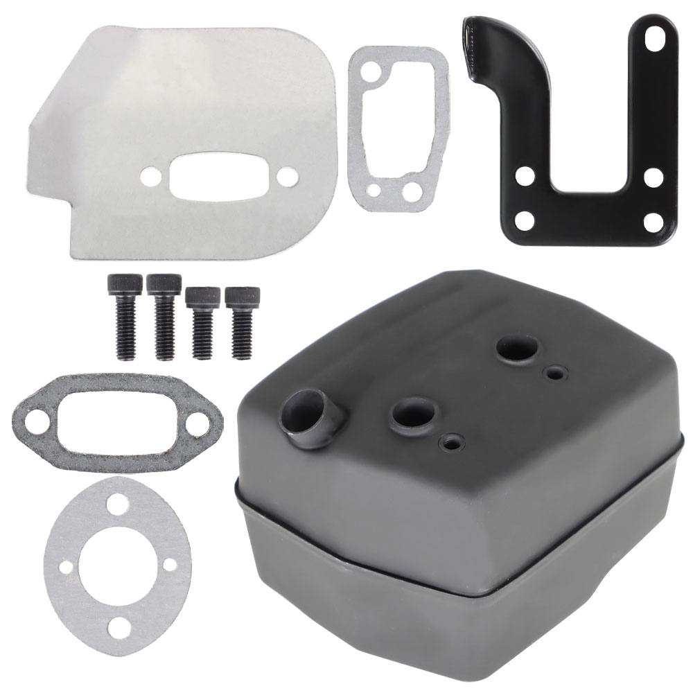 1 x Muffler, 1 x Bracket, 1 x Deflector, 4 x Bolt, 3 x Gasket.