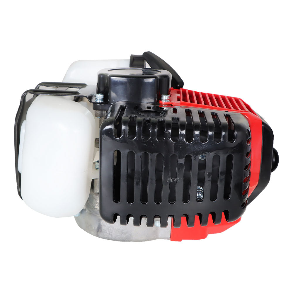 Forced air cooling, single-cylinder, 2-stroke, hand-started gasoline engine.