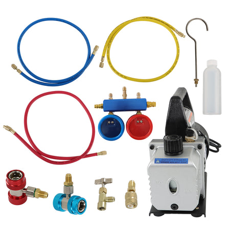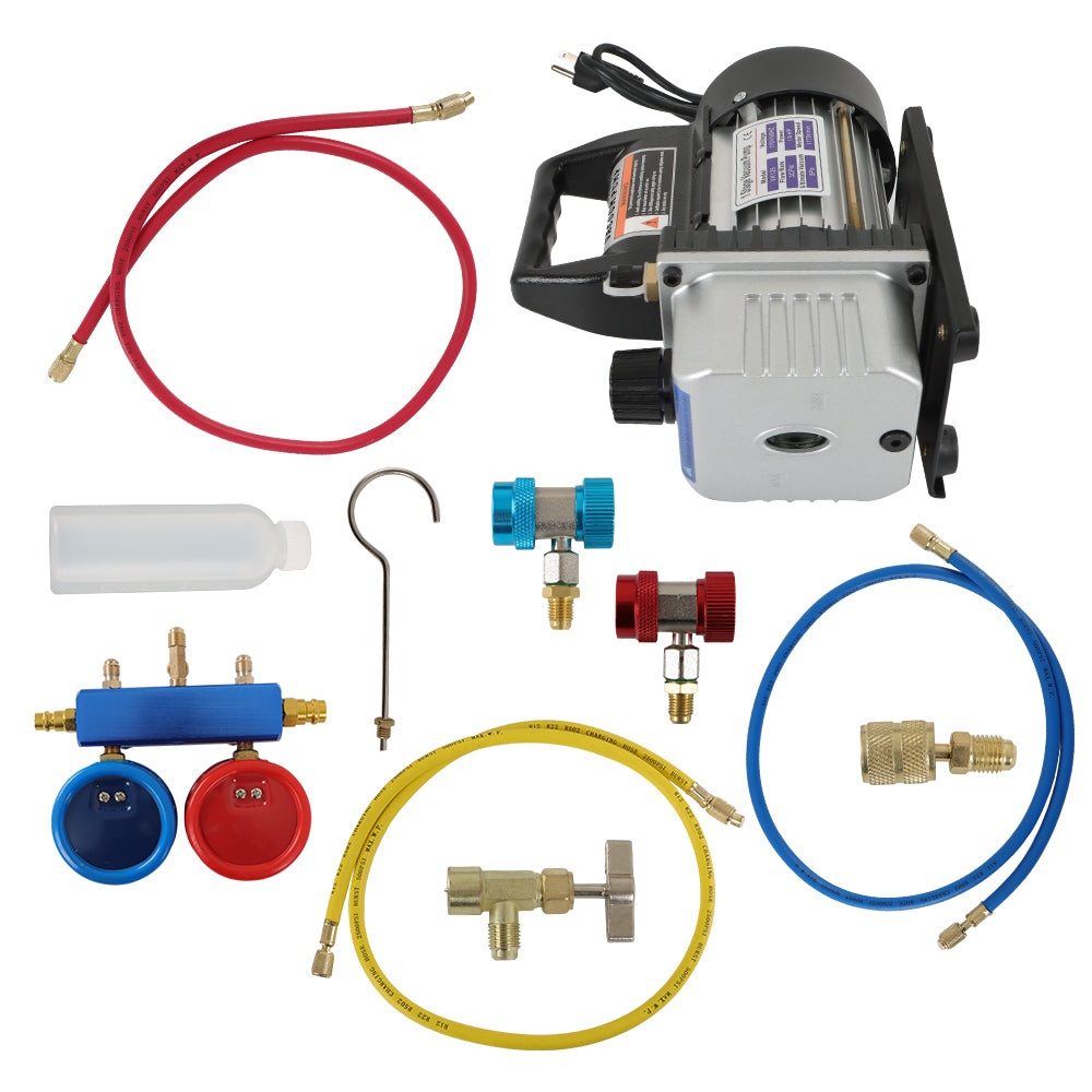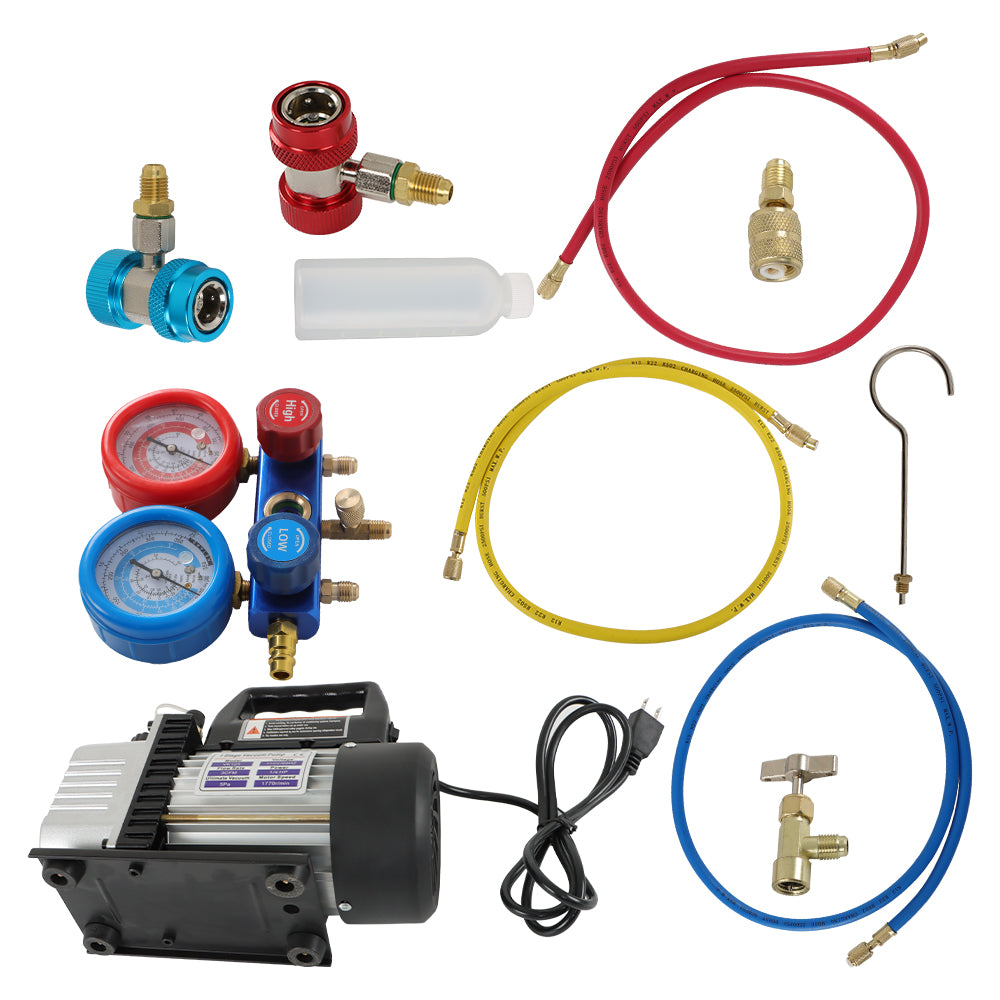 AC Manifold Gauge Set Combo 110V/60HZ 3 CFM Air Vacuum Pump HVAC & R134A Kit