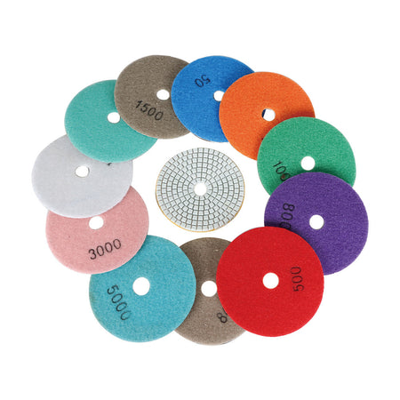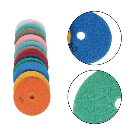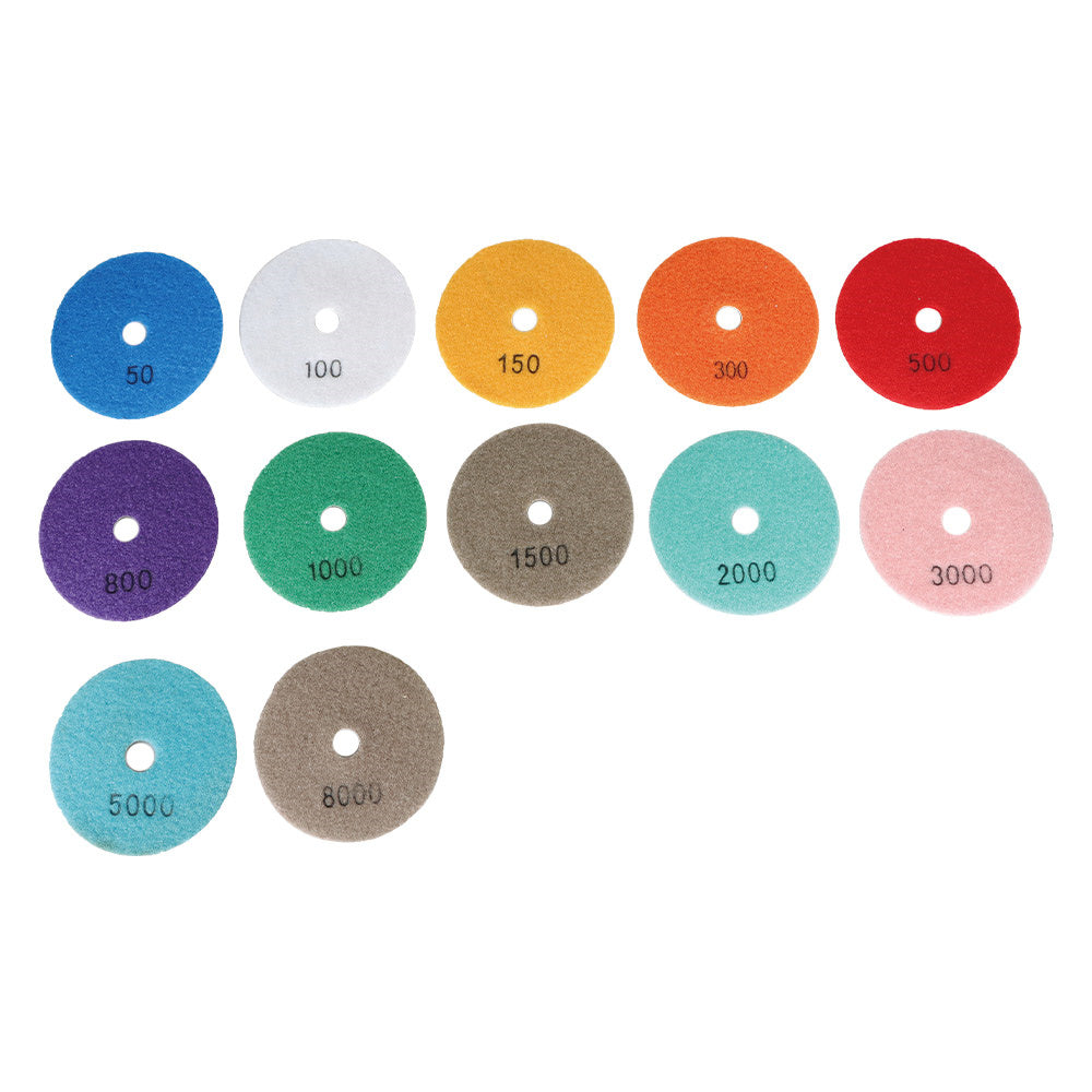- The diamond polishing kit comes with 12 Pieces of 4-Inch Diamond Polishing Pads (Grit 50#, 100#, 150#, 300#, 500#, 800#, 1000#, 1500#, 2000#, 3000#, 5000#, 8000#),