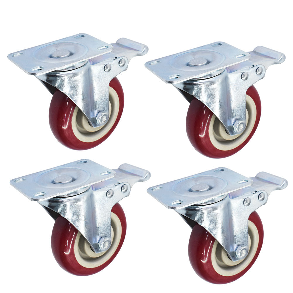 Heavy Duty Caster Wheels 4" Swivel All Brake Casters Non Skid No Mark 4 Pack