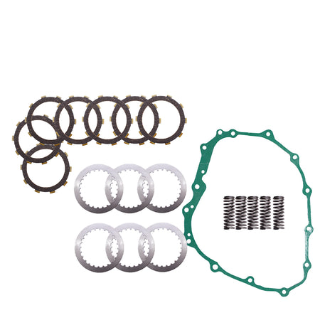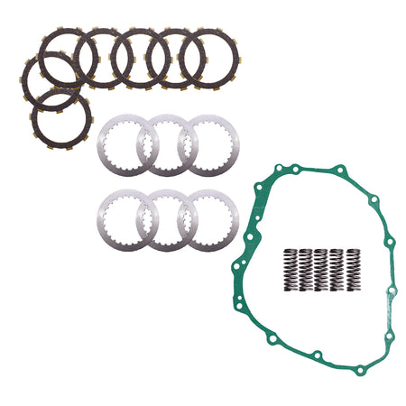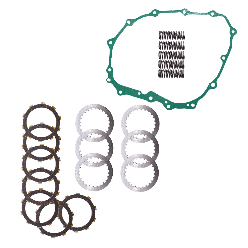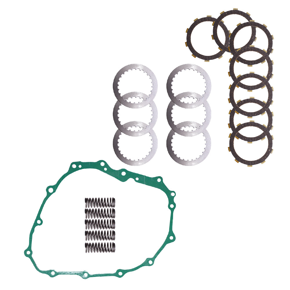 - Kit comes with: A full set of fiber friction discs, steel separator plates, heavy duty springs and a clutch cover gasket