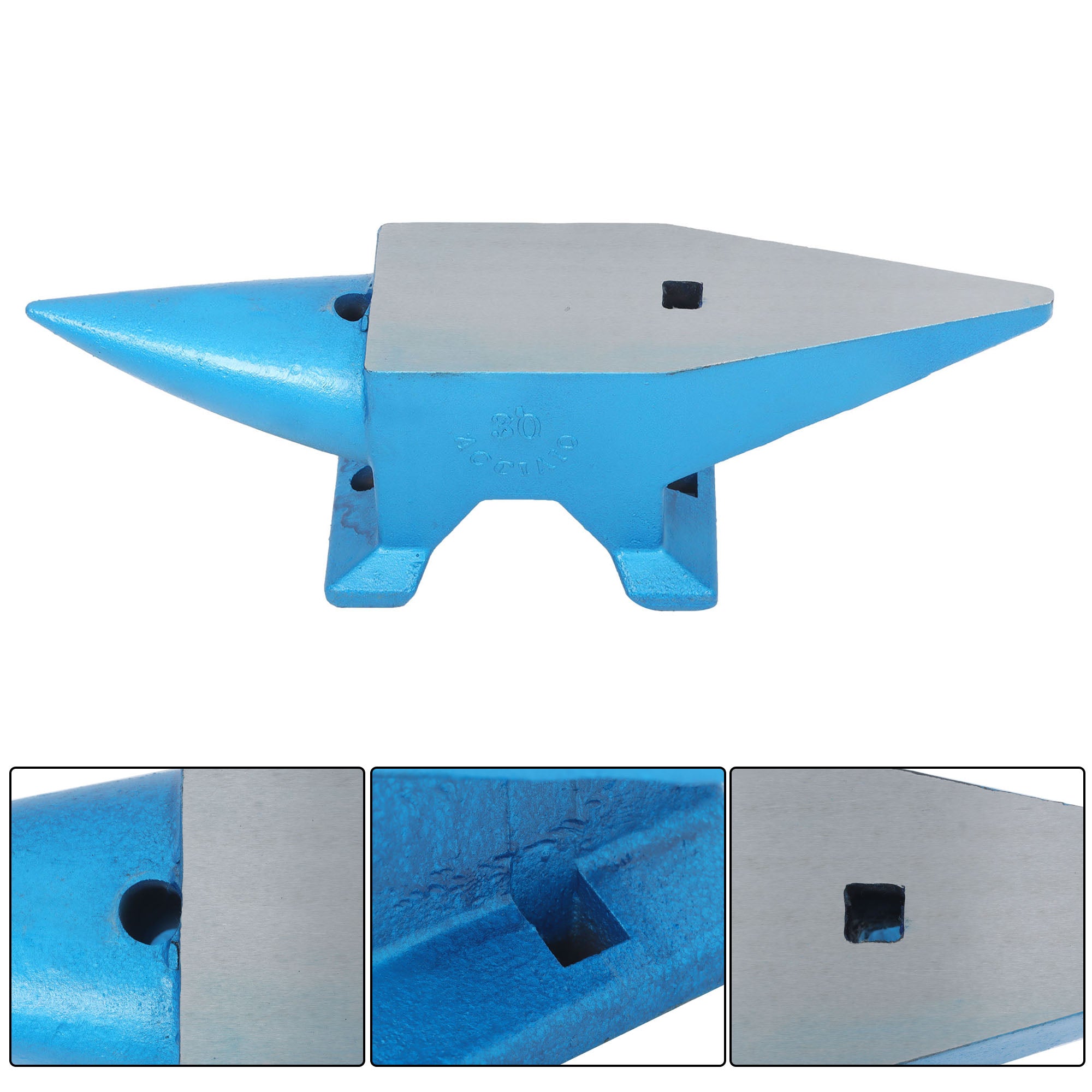 Holes & Horns for Different Uses: Round horn and the flat horn of the anvil blacksmith are used for smoothing, bending, and shaping. And the hardy hole and pritchel hole can show a good performance in accessories’ punching and twisting.