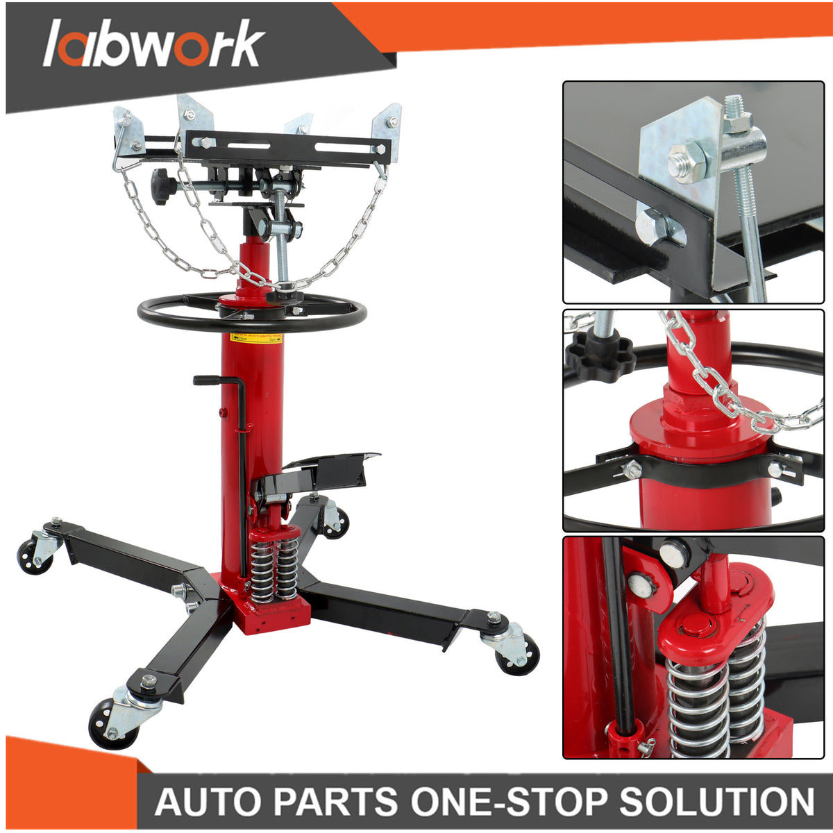 -33-1/2" -67" Lifting Range: Enhanced hydraulic pressure for an extended lifting range, the pedestal transmission jack with a 33-1/2 inch to 67 inch lift range, our jack can lift your car to any suitable height. Comes with a foot-operated pedal, so it's easier to rise, and free up your hands.