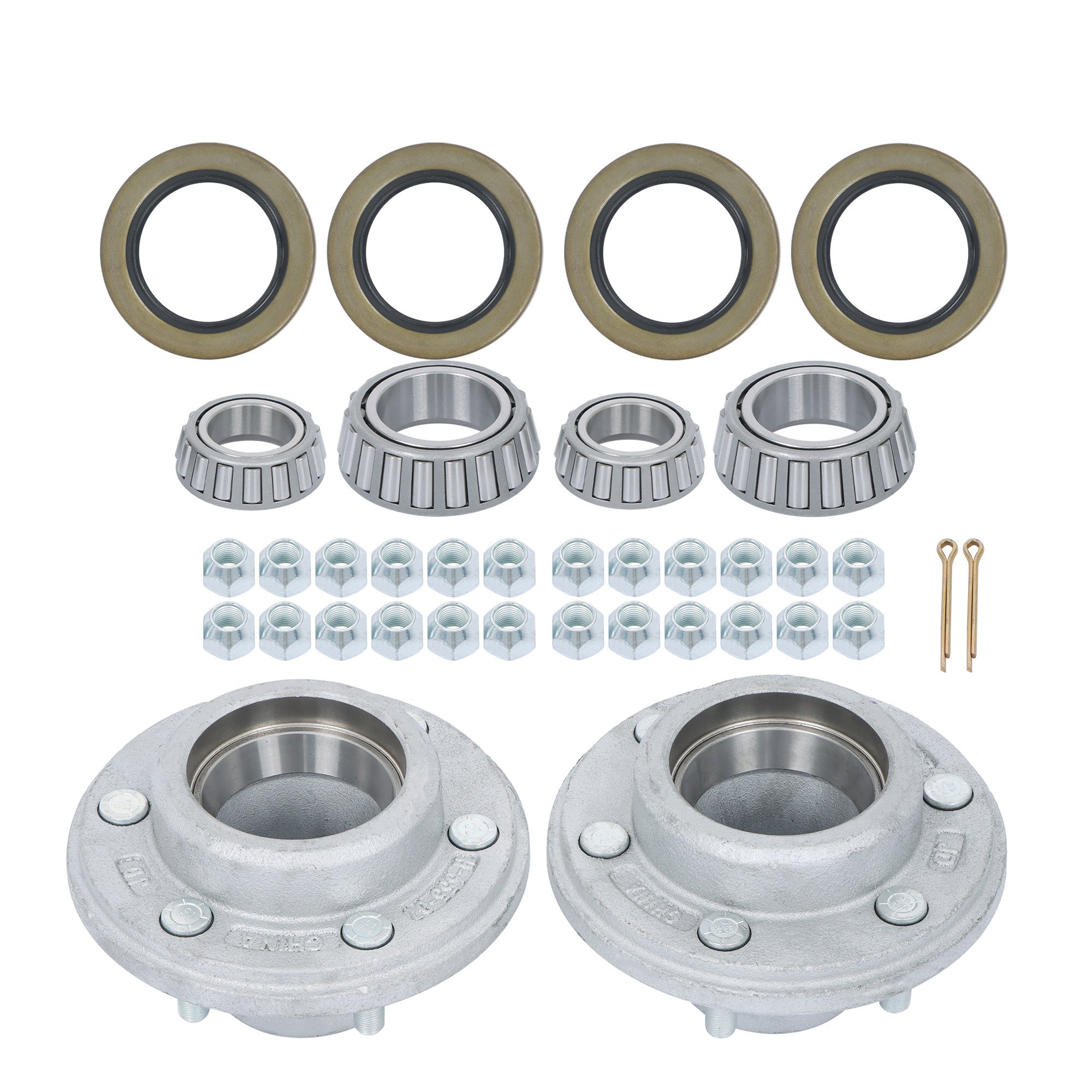 -Includes bearings, seat rings, oil seals, oil caps and galvanized lug nuts