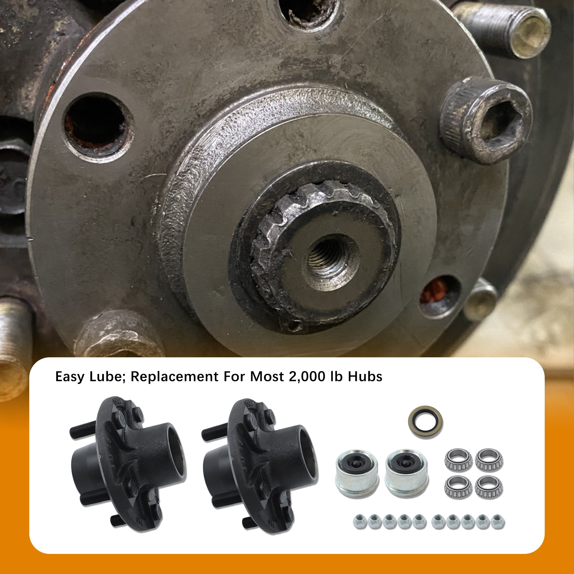Includes bearings, seat rings, seals, oil caps and lug nuts
