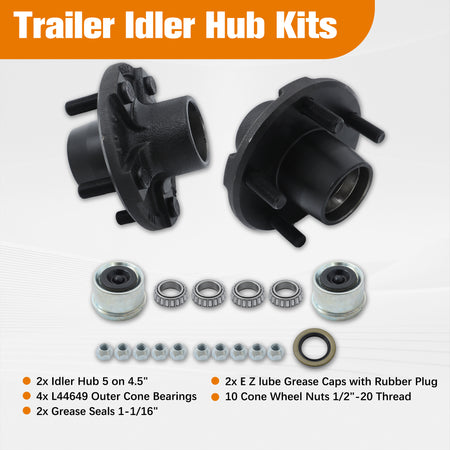 Labwork 5 on 4.5" For 2000 lbs Axle 1-1/16" bearings 2 Trailer Idler Hub Kits