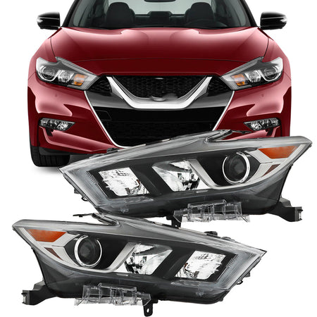 Labwork Driver&Passenger Headlights For 2016-2018 Nissan Maxima LED Chrome Clear