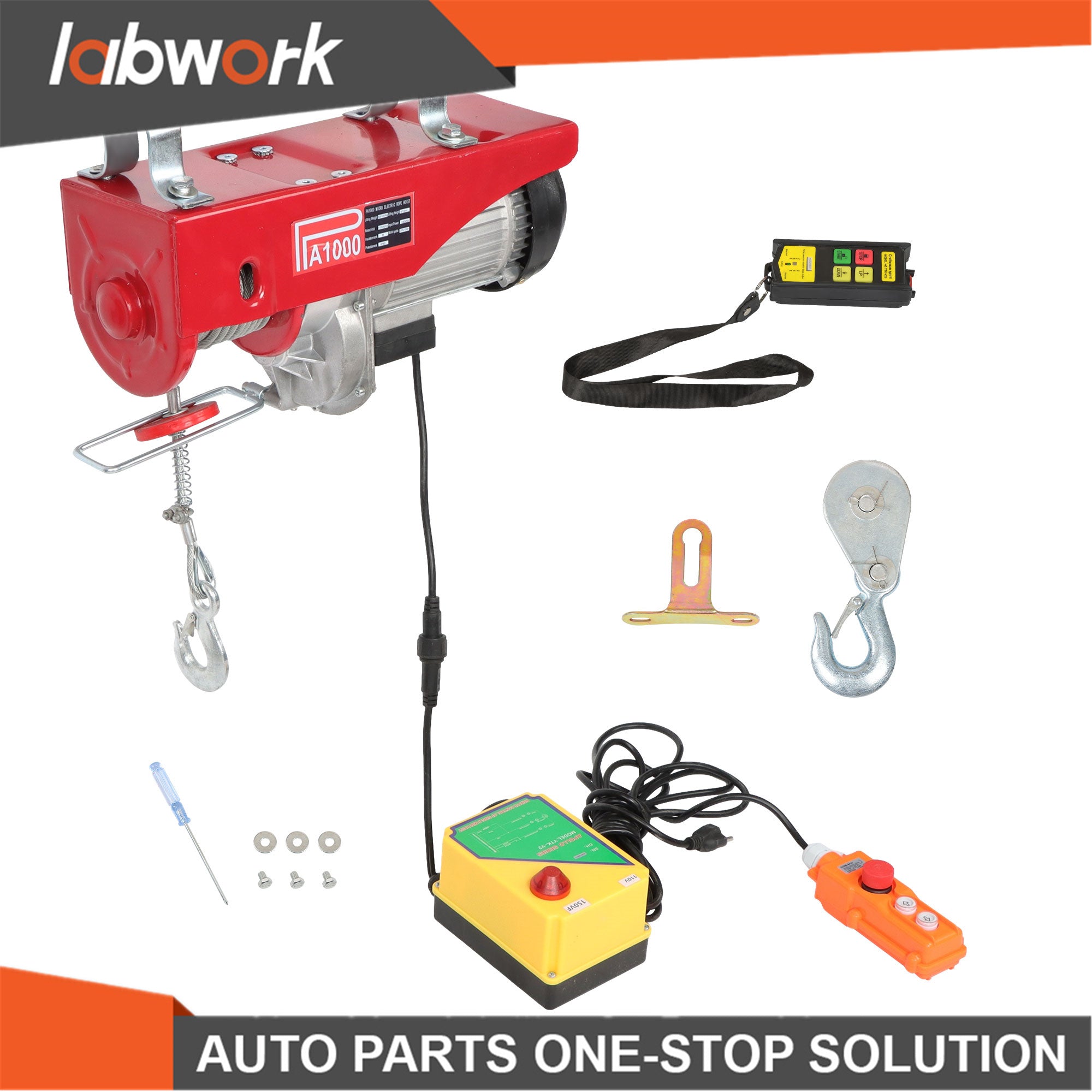 Labwork Electric Hoist 2200lbs 328ft Wireless & 14ft Wired Remote Control 1600W
