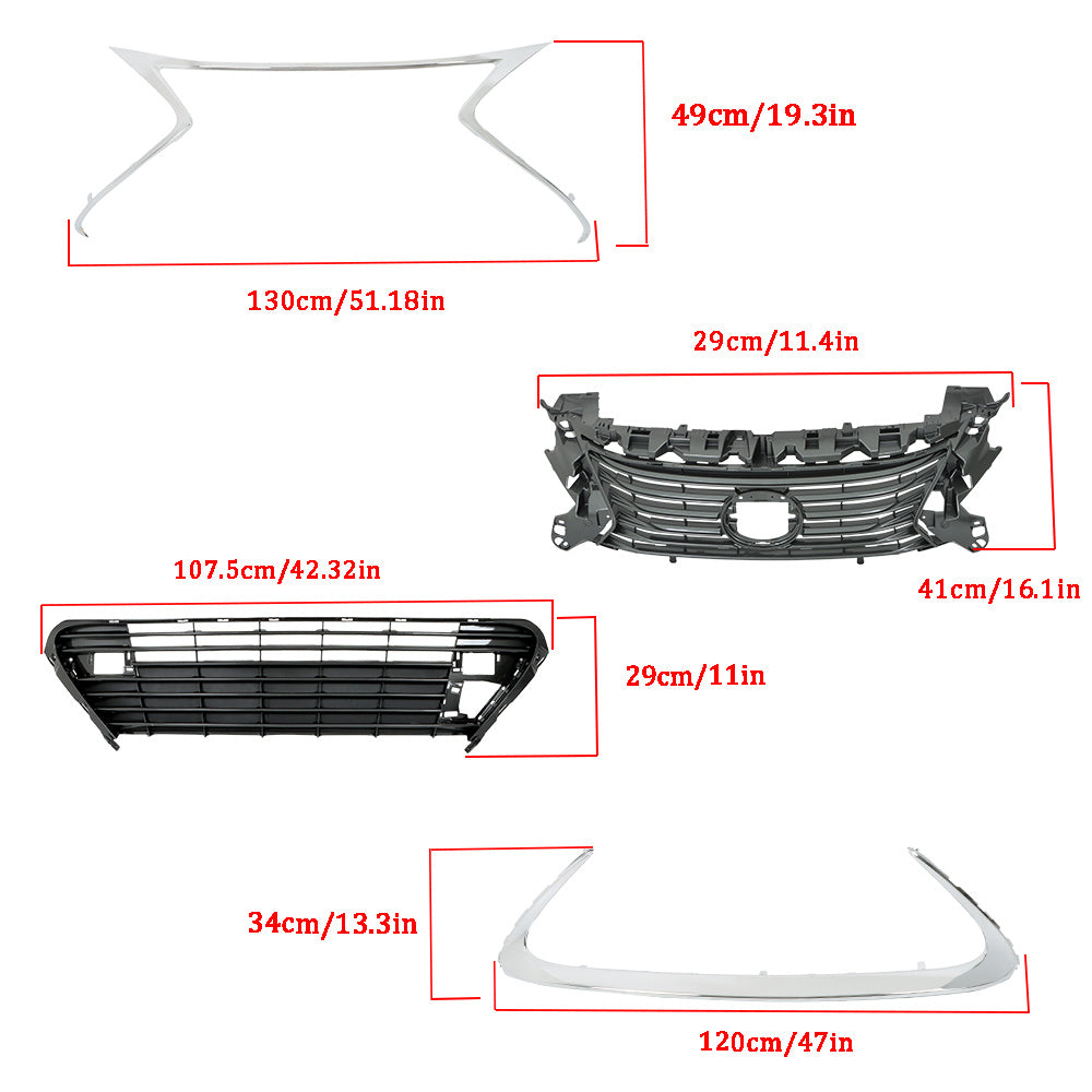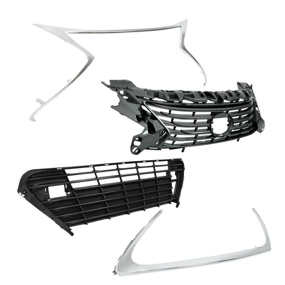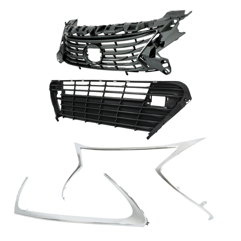 Labwork Front Grille Gray BLK For Lexus ES300h ES350 2016-2018 W/Chrome Trim Set