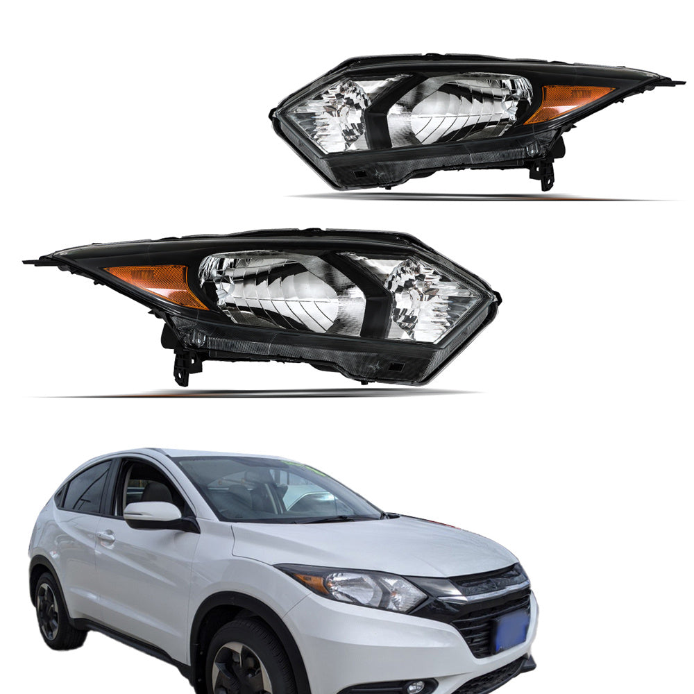 Labwork Left+Right [Halogen] Black Headlights Headlamp For 2016-2018 Honda HR-V