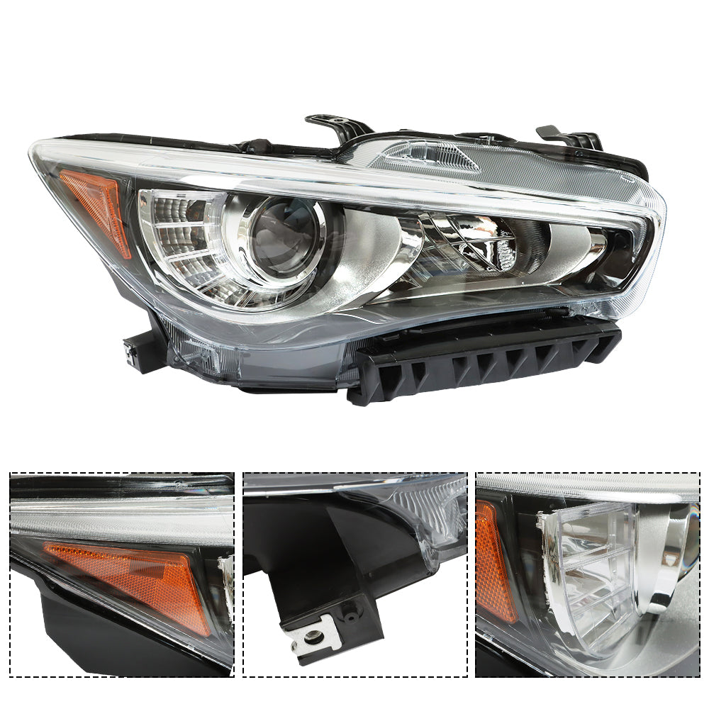 Labwork Right Side Headlights For 2014-2017 Infiniti Q50 LED Type W/o AFS Chrome