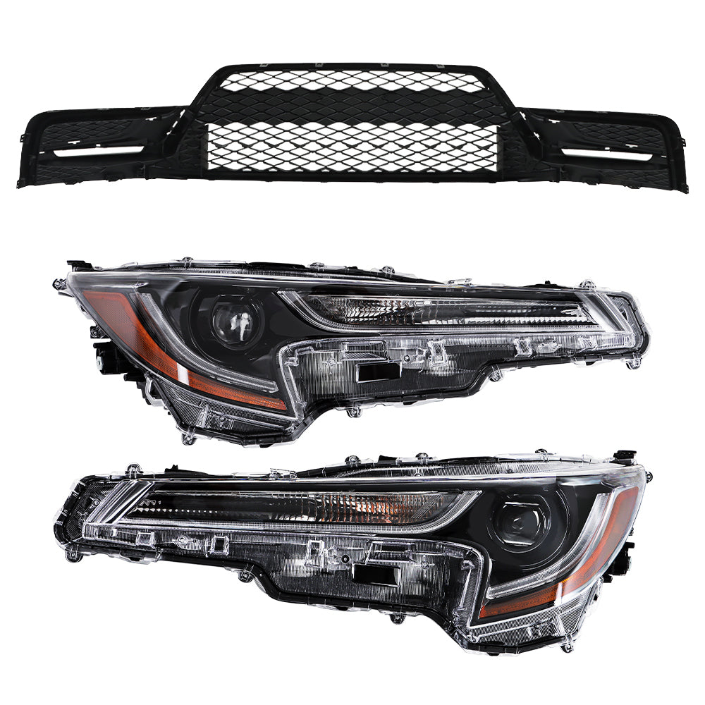 Labwork Set Front Grill&Headlights Assembly For 2023-2024 Toyota Corolla Black