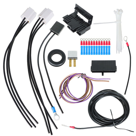 The Wiring Kit Includes Fuses For Radio, Coil, Dome Light, Horn, Cigarette Lighter, Ac/heat, Backup/cruise, Fuel Pump, Radio, Turn Signal, Horn, Acc, Wiper, Gauges, Hazard, Fan, Power Window, Power Door Locks, Brake & Headlights, Also Includes Horn Relay And Connector, Turn And Hazard Signals, Dimmer Switch Connector, Circuit Breaker For Headlights, 2 Flashers, 1 Alternator Plug, 2 Ignition Switch Connectors.