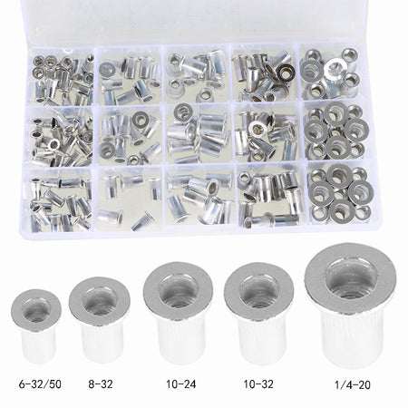 Metric Aluminum Rivet Nut Kit Rivnut Nutsert Standard Inch SAE Imperial 150 Pcs