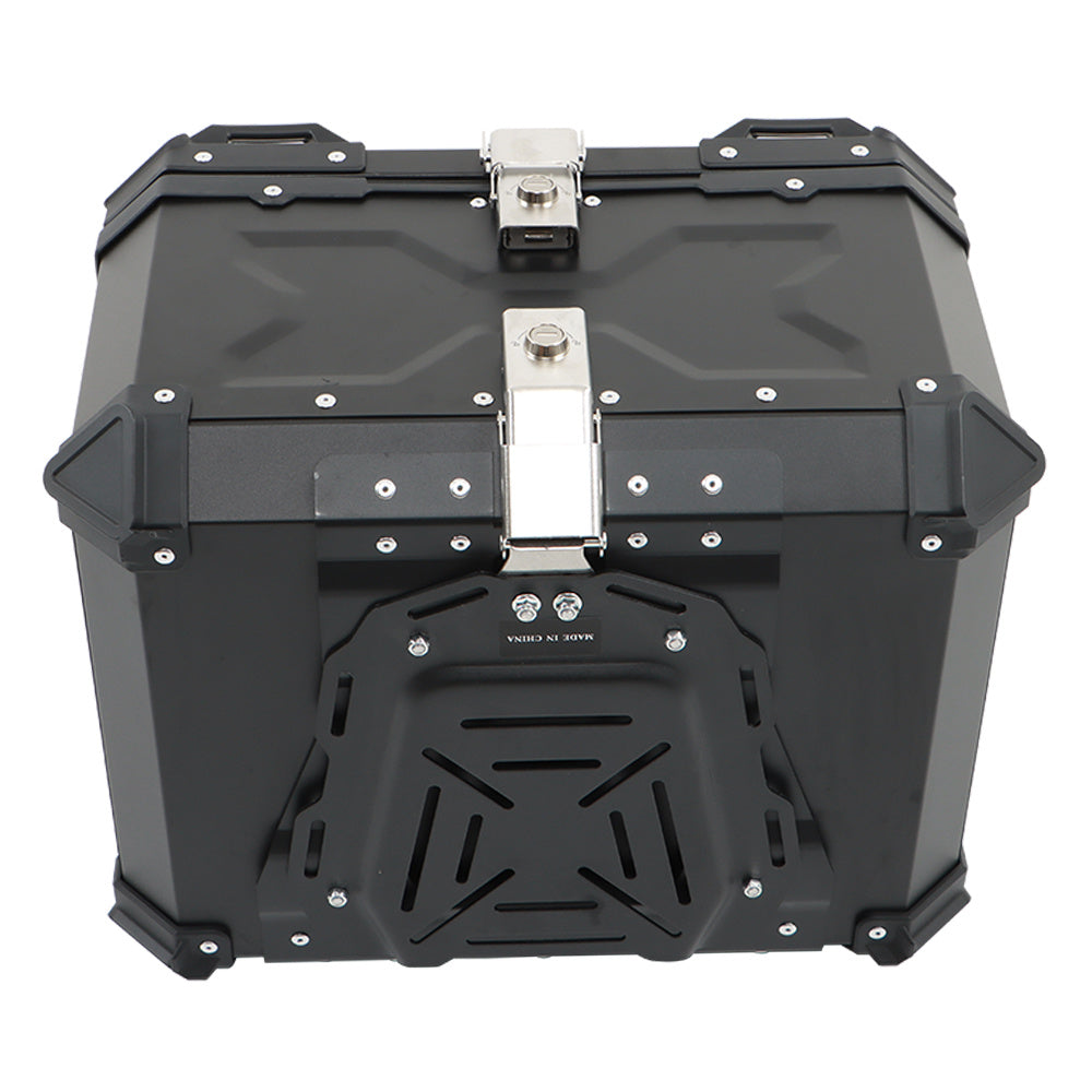 -Black 55L Motorcycle Top Case Tail Box Waterproof Luggage Scooter Trunk Storage Aluminum
