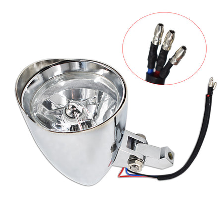 Motorcycle Chrome Visor Headlight For Bobber Chopper Dyna 12V
