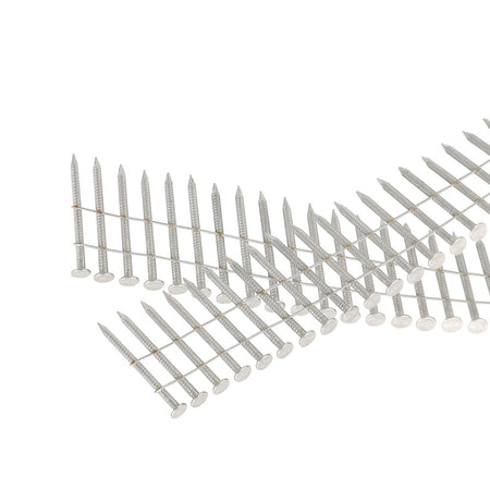 Coil siding nail for use in cement board siding or fencing applications. For use with most 15 Deg (degree) coil siding and fencing nailers including Bostitch, Hitachi, Makita, Porter-Cable, Senco, and Max.