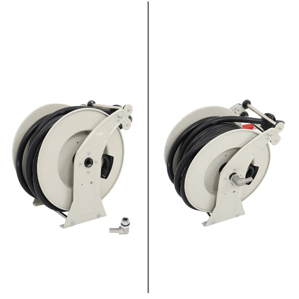 Self-retractable Hose Reel: Our fuel hose reel is designed with an automatic rewinding system, which allows you to retract the hose effortlessly, so you don't have to deal with a tangled mess.The rollers dramatically reduce wear, while the hose stopper keeps the cord exactly where you want it to be. Get ready to deliver fuel in no time, and retract the hose in seconds.