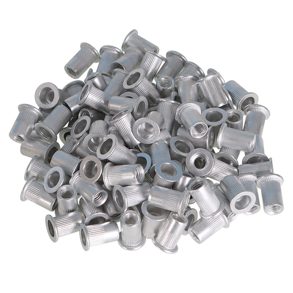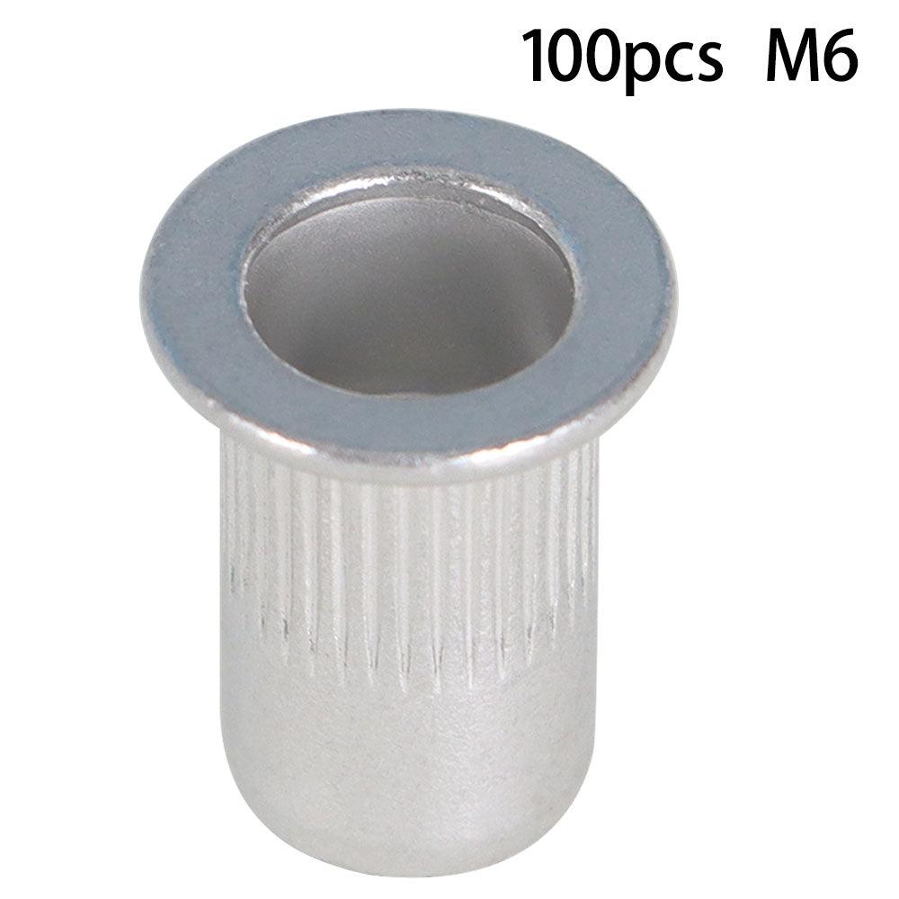 New M6 Aluminum Flat Head Rivet Gun Nuts Insert Nutsert Silver Tone 100 Pack
