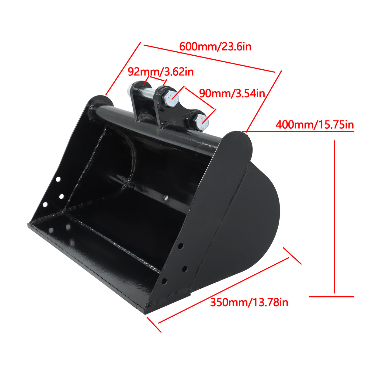 -Before buying this 600mm Flat Bucket witout teeth attachment, please kindly confirm the below connection size with your own excavator, if the connection size is same with below, could buy this 600mm Flat Bucket attachment directly, if NOT SAME, please do not buy.