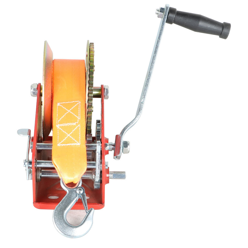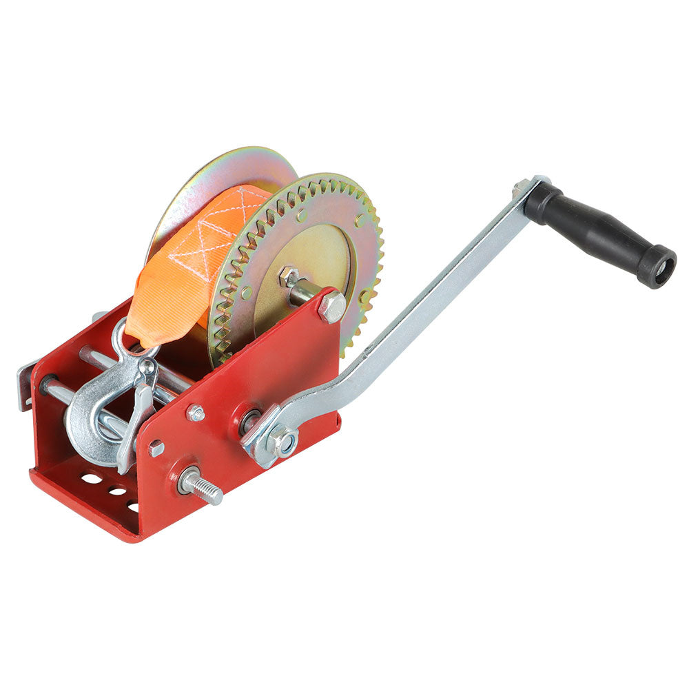 Red Hand Winch Hand Crank 2 Gear Red Strap ATV Trailer Boat - 3500LBS